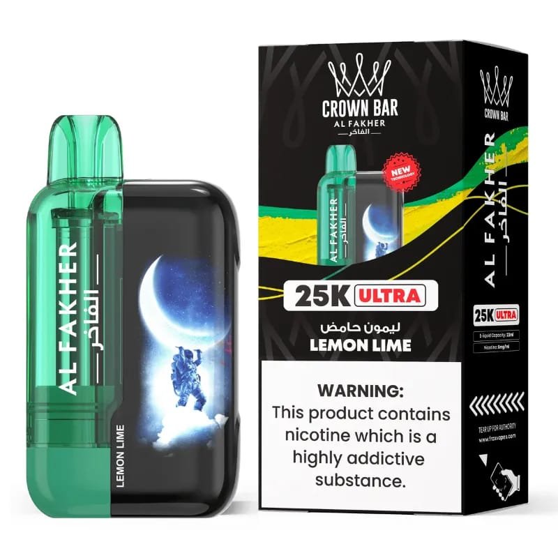 Bother the best and most powerful in any disposable e cig even up to date, Al Fakher Crown Bar 25000 Puffs Disposable Vape provides users extreme satisfaction with a more flavorful and huge puff cloud than ever before.