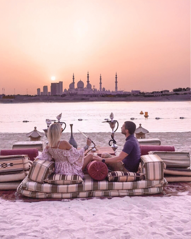 Combining shisha fun and beachfront setting provides some of Abu Dhabi’s most memorable hookah moments. Shisha Abu Dhabi beach venues take advantage of the magnificent coastline to create settings where the water pipe experience is paired with the seaside ambiance. The establishments vary from beach cafés that are casual and have sandy feet or elegant lounges with private beaches in luxurious hotels.